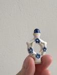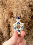 Кулон куманець - виліплений з білої керамічної маси, розписаний підглазурними фарбами та вкритий прозорою поливою з нанесенням акцентів золотом.