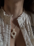 Кулон куманець - виліплений з білої керамічної маси та вкритий прозорою поливою.