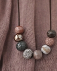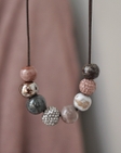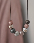 Керамічне намисто з колекції Halftone - це гра фактур, напівтонів і природних відтінків. Кожна намистина має унікальну текстуру та м’який перехід кольорів, що нагадує природні камені, висушену глину та пісок.